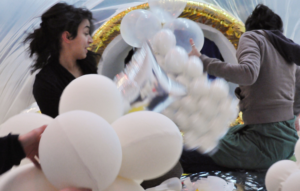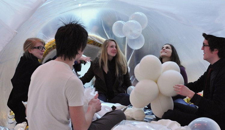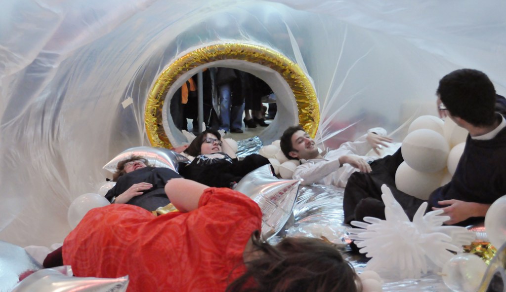 The aim : inviting visitors in an inflated capsule, to enjoy their time with inflated materials.