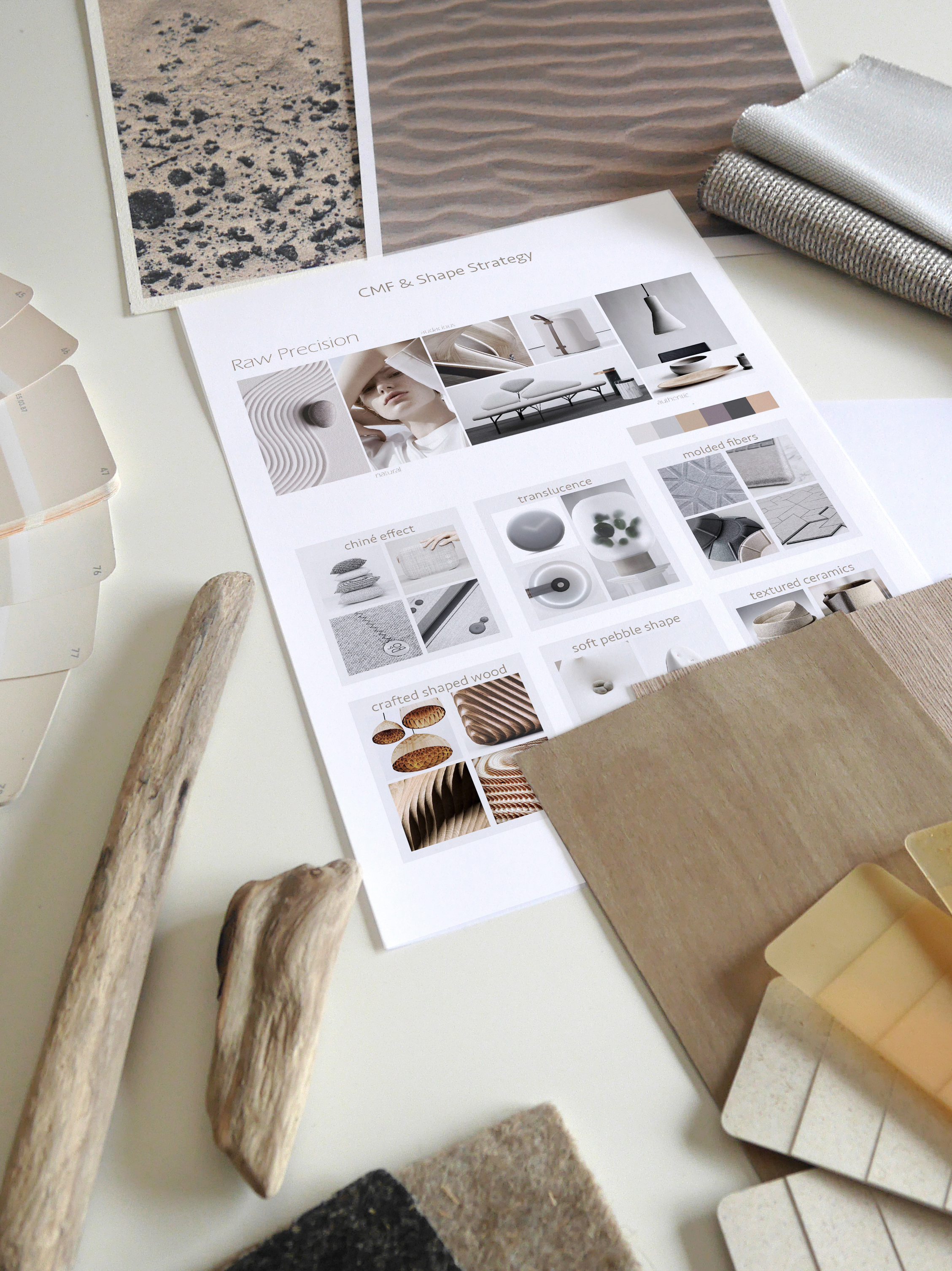 From hard to soft materials, from flat patterns to physical textures, here comes the CMF design applications, based on our senses perception, awakening our emotions. It tells a story, immersing the user in a world through an atmosphere and induces functional attributes and a sensory experience in relation to the product.