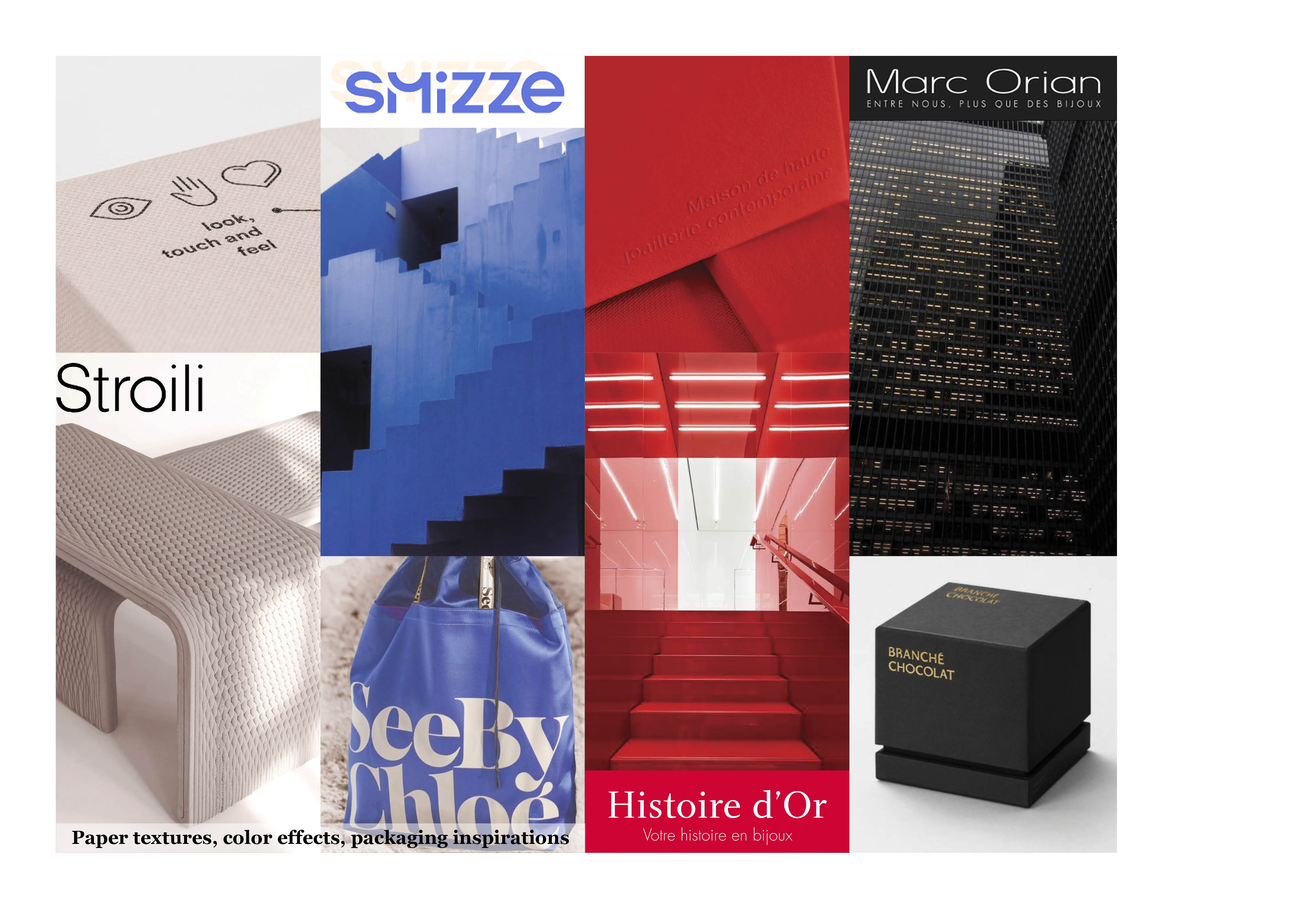 Physical samples material design for Tentation and Impulsion trend catalogs.